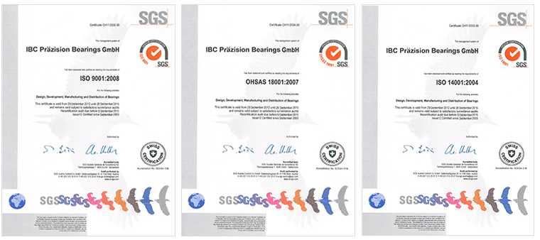 IBC軸承生產(chǎn)制造基地?fù)碛袑I(yè)權(quán)威認(rèn)證,包括ISO9001:2008、ISO14001:2004及TS16949:2002等質(zhì)量體系認(rèn)證,保證IBC產(chǎn)品具有持續(xù)穩(wěn)定的品質(zhì)。